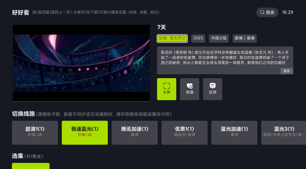 登录后看视频清晰度就会提升不少,有4K有高清,不过需要手机版电视版同时登录,且每天手机版点击签到看一个广告,广告内容有点恶心……